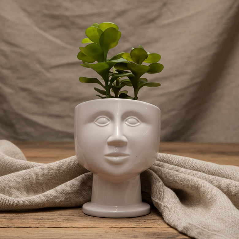 Kruka Ansikte Vit Porslin