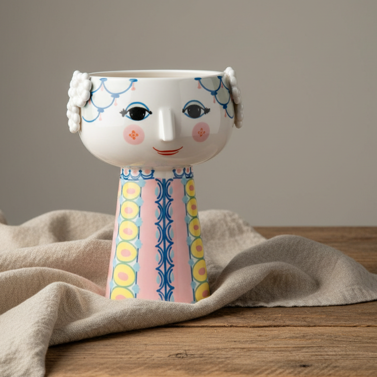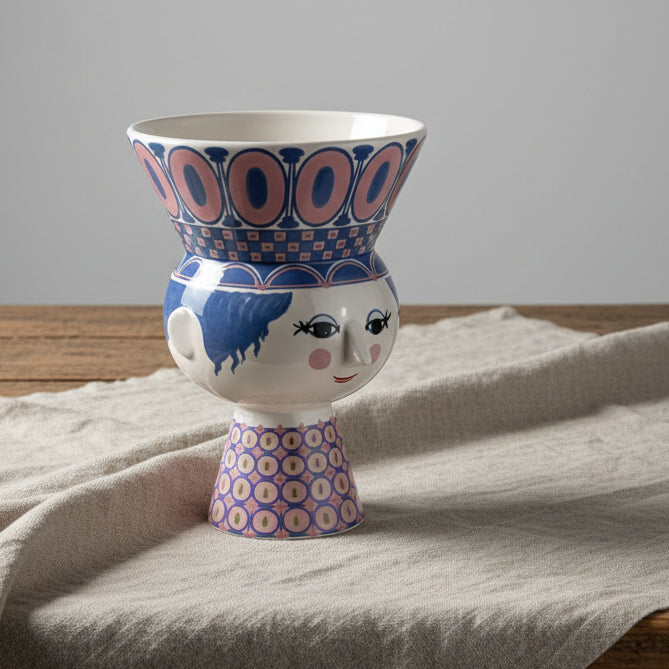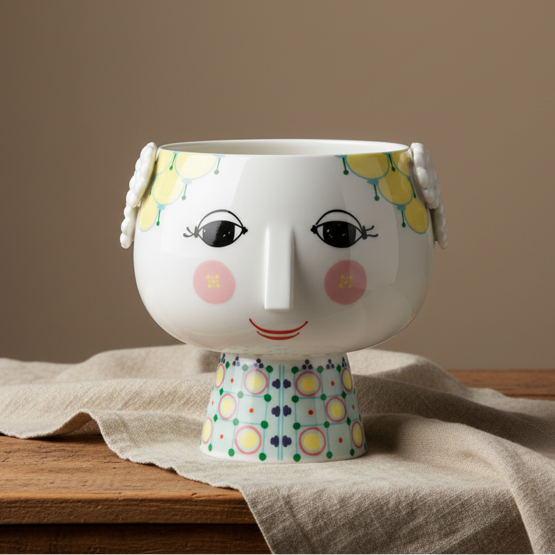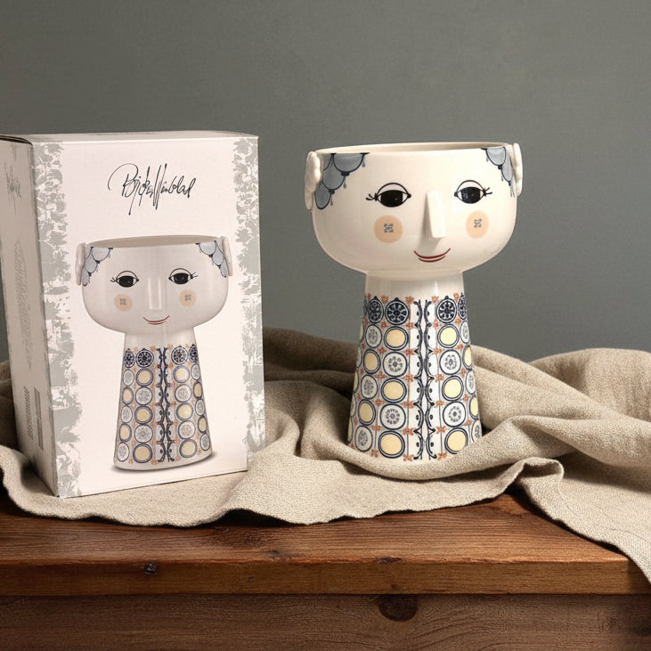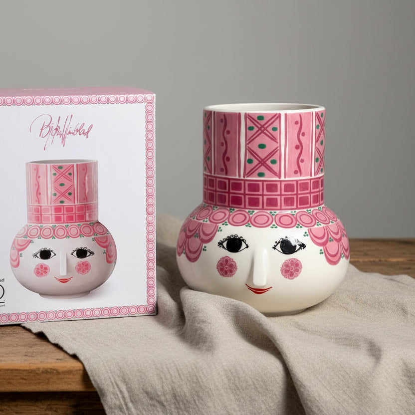 Det går inte att bara passera en Bjørn Wiinblad-vas, skål eller ljusstake – man måste stanna upp och beundra detaljerna. Hans karakteristiska porslin är kända för uttrycksfulla ögon, vilda frisyrer, unika öron och kantiga näsor, vilket gör varje föremål till ett samlingsobjekt och designklassiker.