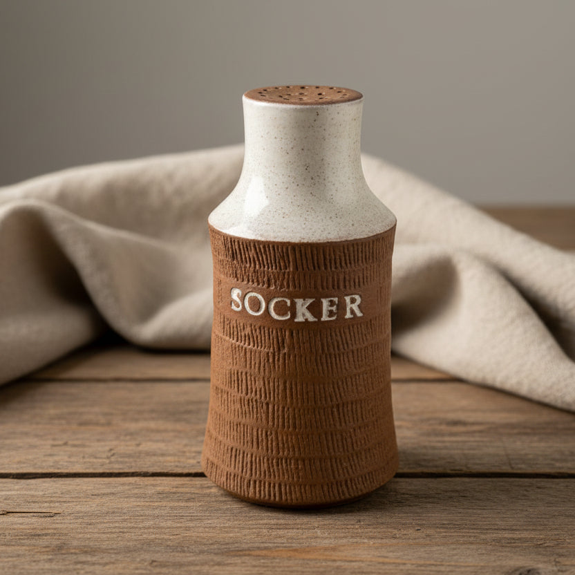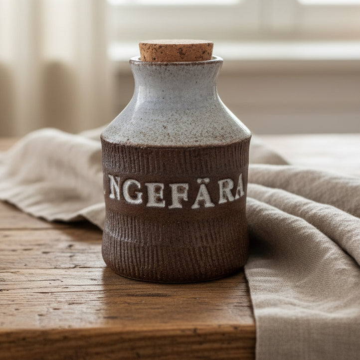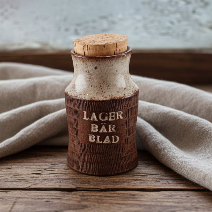Signe Persson-Melins kryddburkar från 1955 är lika älskade nu, som då de presenterades på den stora mässan H55. De är enkla och formgivna för att brukas i vardagen och i köket. Valet att använda ett korklock till kryddburkarna var heller ingen tillfällighet utan noga uttänkt, både lera och kork är naturmaterial som ”gifter” sig perfekt med varandra!