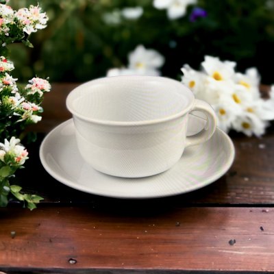 Servisen Primeur kom också i början av 1980-talet och den finns som vit med en enkel terrakottakant, i blått med terrakottakant och i guld som var tänkt för export. Servisen tillverkades på Rörstrand.