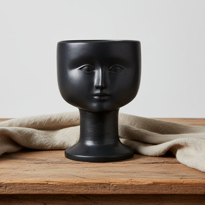 Stor Kruka Ansikte Svart Lisa Larson Gustavsberg