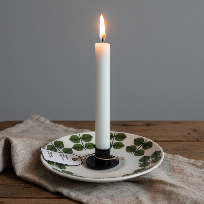 Fantastiskt snygg och ljusstake i porslinet Berså av Stig Lindberg, ljuskoppen i smide. Fatet har en gång tillhört den ovanliga chokladkoppen. Ljus för vanligt kronljus.