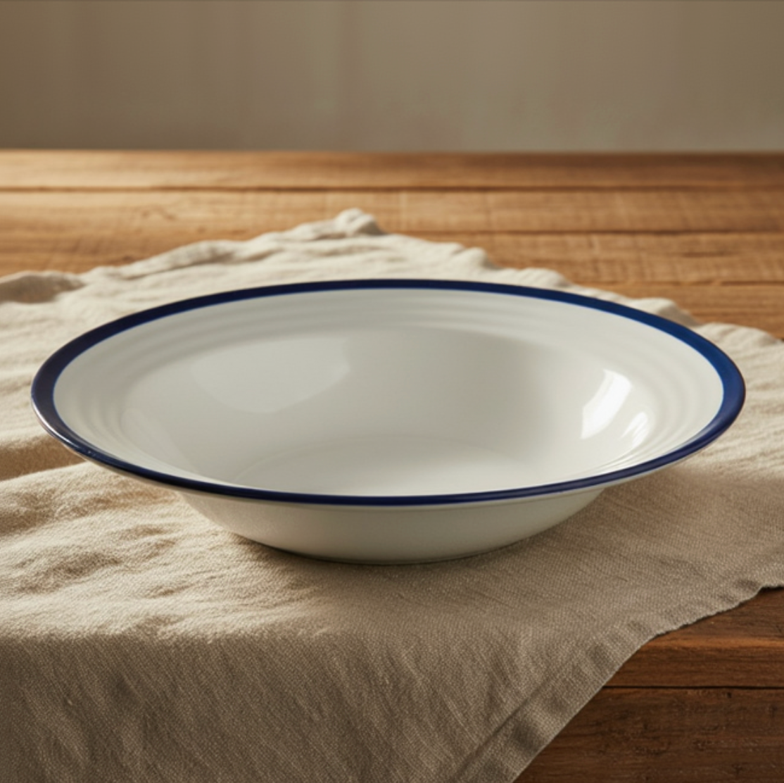 "Blå rand" Djup Tallrik i porslin