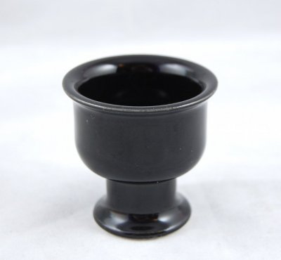 En svart äggkopp i Signe Persson-Melins Boda Nova-serie. Kan även användas som ljusstake för värmeljus eller kronljus. Mycket bra bruksskick!