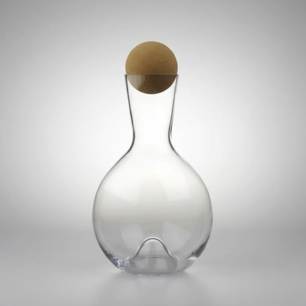 Snygg karaff i modern, enkel design. Helkristall med härlig tyngd och förslutning i form av träkula. Oöm formgivning som gör att man inte tvekar att använda den närhelst man ska servera vin eller vatten.