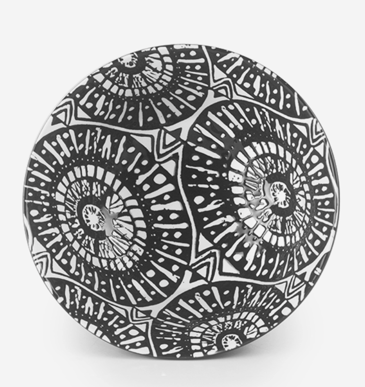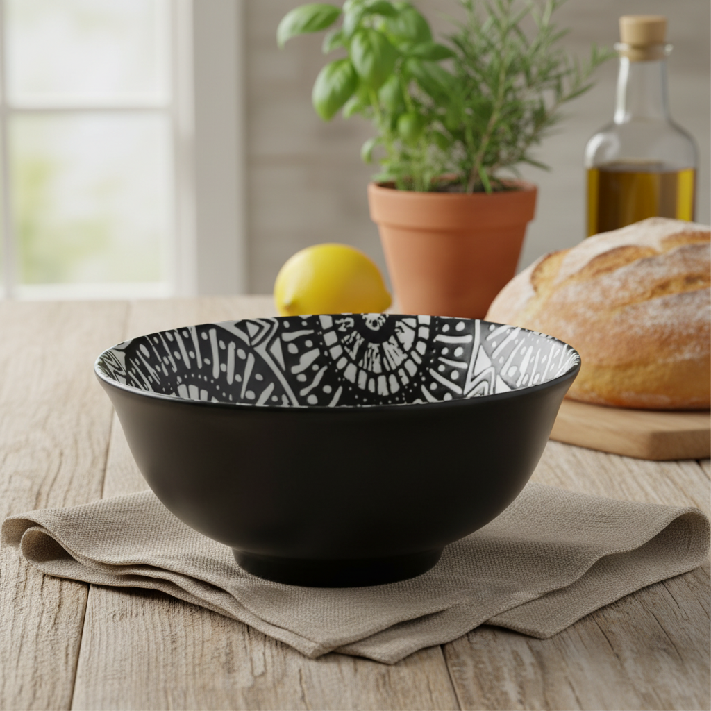 Härlig skål i glaserad keramik. Läckert svart mönster.