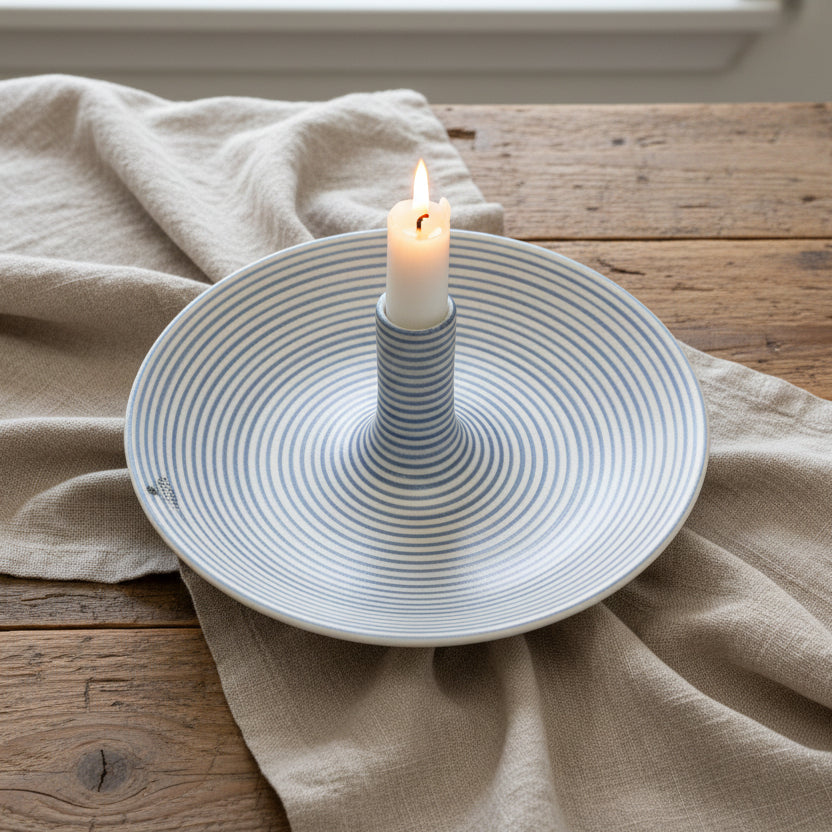 Elegant handdrejat ljusfat med handmålade linjer. Perfekt för att förgylla matbordet, myshörnan eller i fönsterkarmen. Anpassa dekorationen efter säsong, från nötter till godis till frukt eller stenar.
