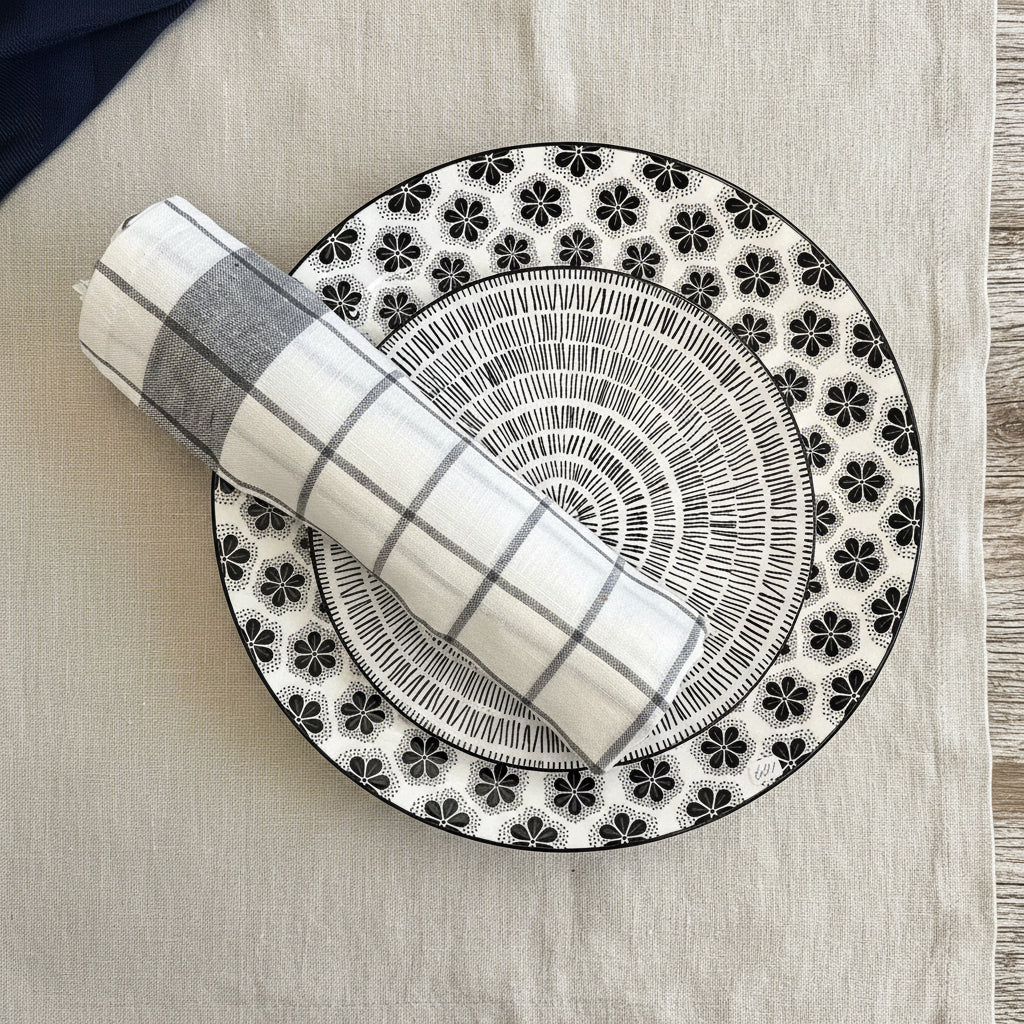 En stilren och vacker assiett med tidlöst mönster i svart. Det eleganta motivet och den tunna svarta kanten ger en känsla av stil och harmoni.