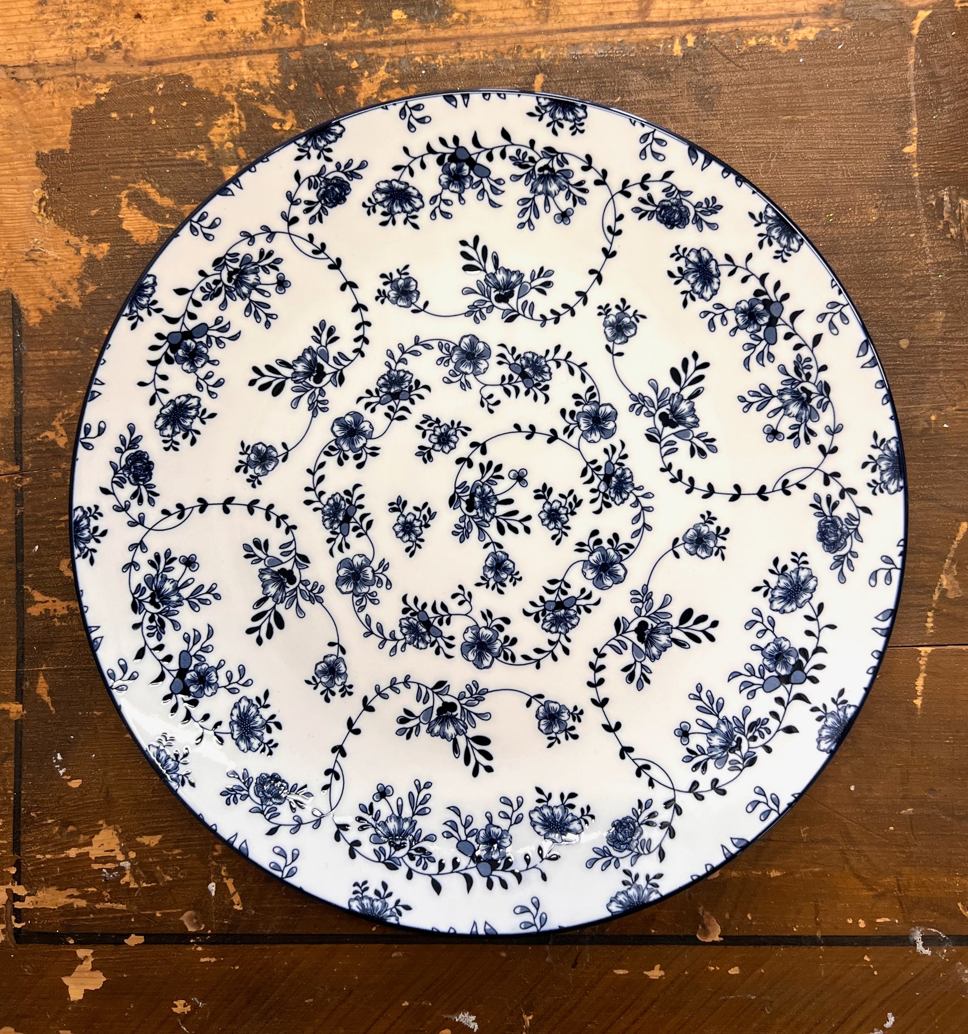 En stilren och vacker tallrik med tidlöst blommönster i blått. Det eleganta blommiga motivet och den tunna blåa kanten ger en känsla av stil och harmoni.