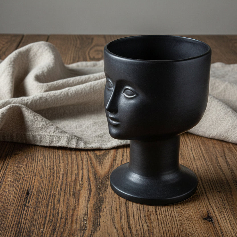 Stor Kruka Ansikte Svart Lisa Larson Gustavsberg